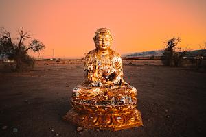 Buddha shrine at sunset, outside Joshua Tree, California